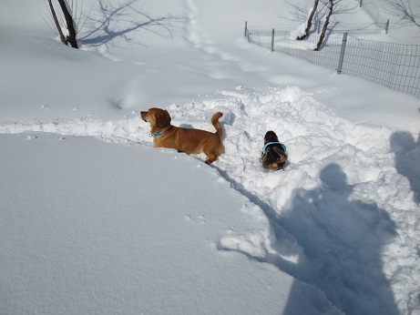 雪の中の走りは、ムック君に負けません。