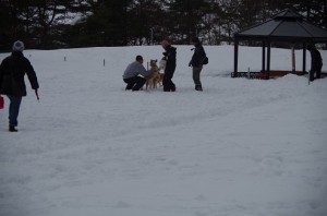 わんちゃんたちは、小雨くらいへっちゃらです。