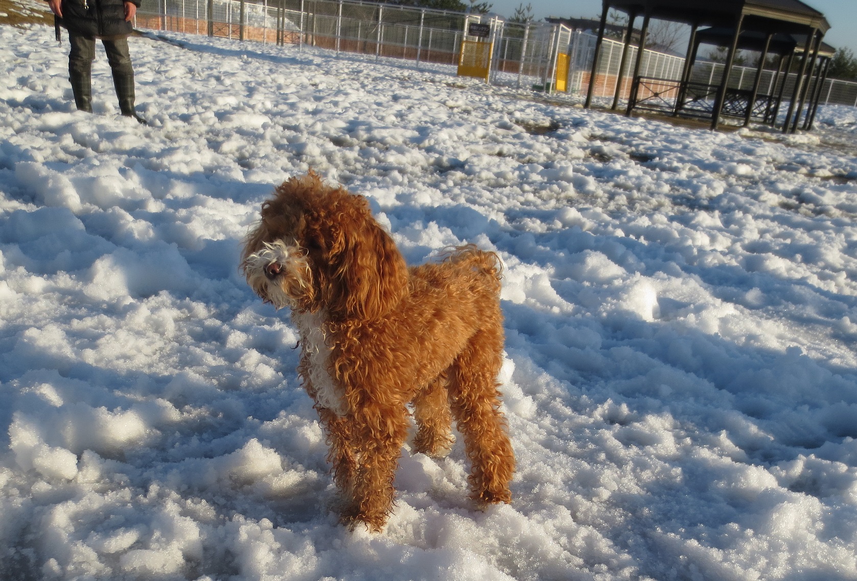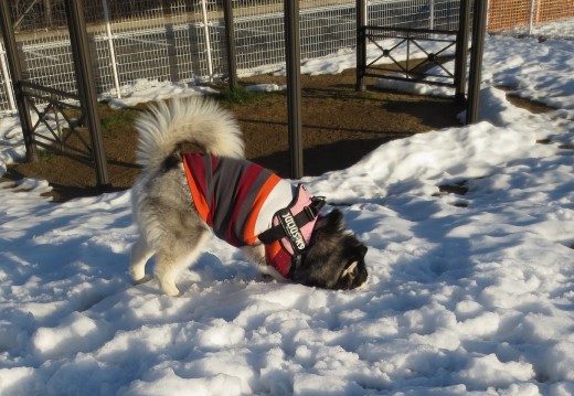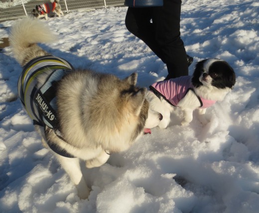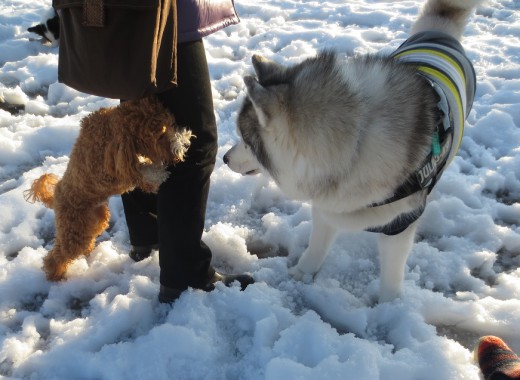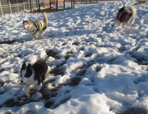 雪玉も付かずわんこたちは、楽しそう。