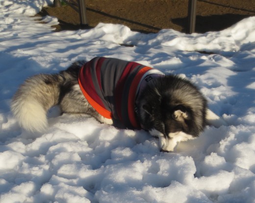 雪の感触を全身で堪能中!